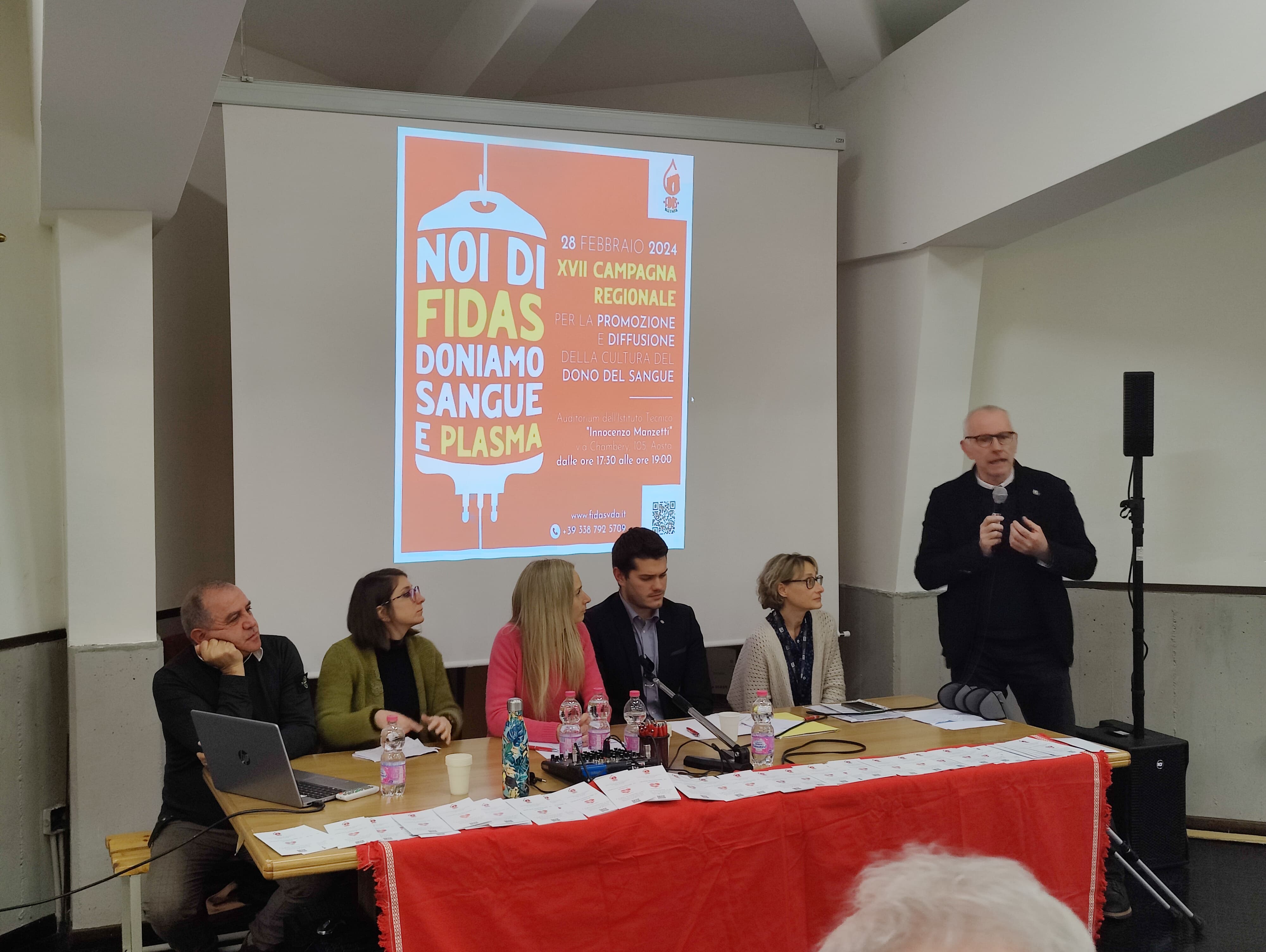 Mercoledì 28 febbraio 2024 si è tenuta presso l'Auditorium dell'Istituto Tecnico "Innocenzo Manzetti" ad Aosta la XVII campagna Regionale di promozione e diffusione della cultura del dono del sangue organizzata da FIDAS - Federazione Italiana Associazioni Donatori di Sangue Valle d'Aosta.