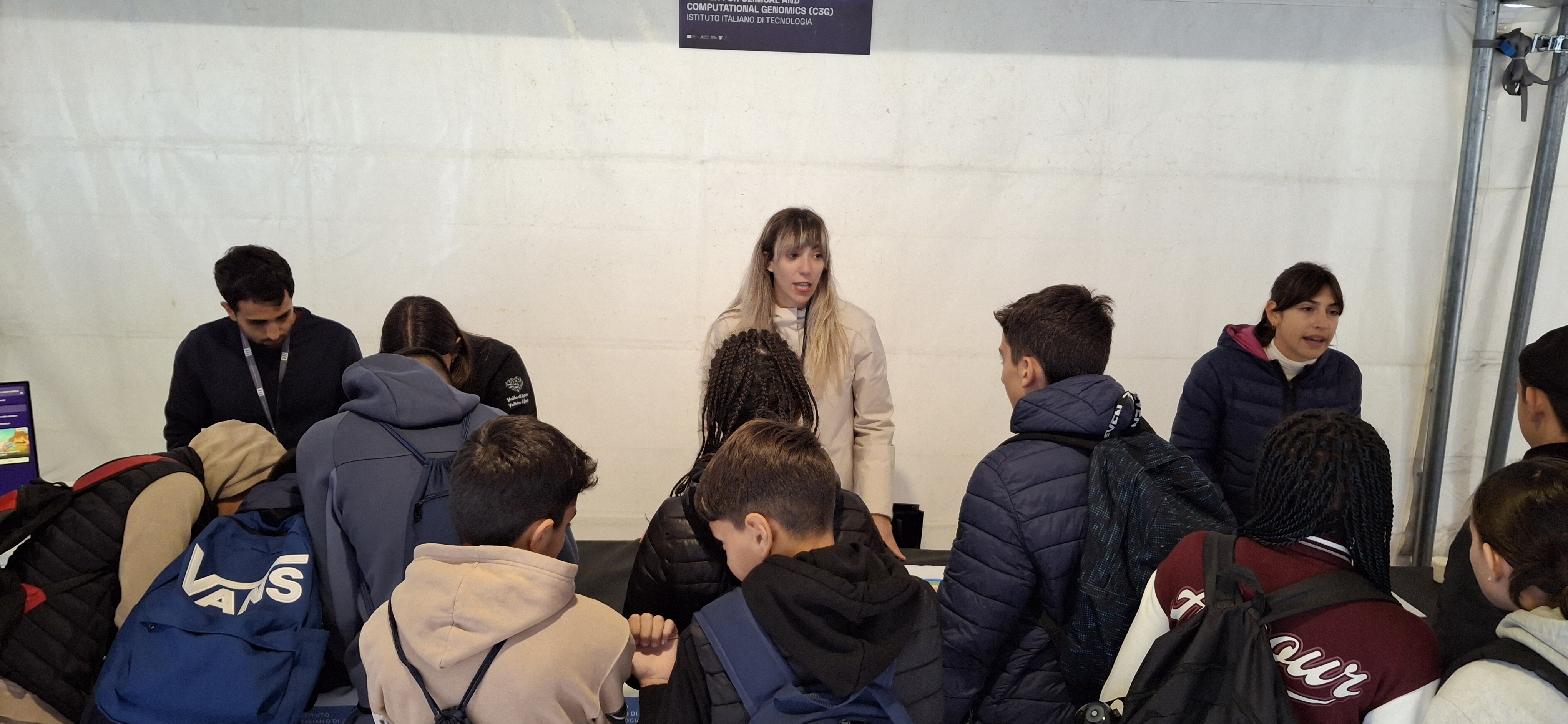 Parte dello staff scientifico del C3G, borsisti, tecnici e dottorandi, ha incontrato circa 200 studenti delle scuole secondarie di primo grado provenienti da tutta la regione. Attraverso attività ludico-didattiche, gli studenti hanno conosciuto alcuni aspetti della ricerca genomica, divertendosi e imparando.