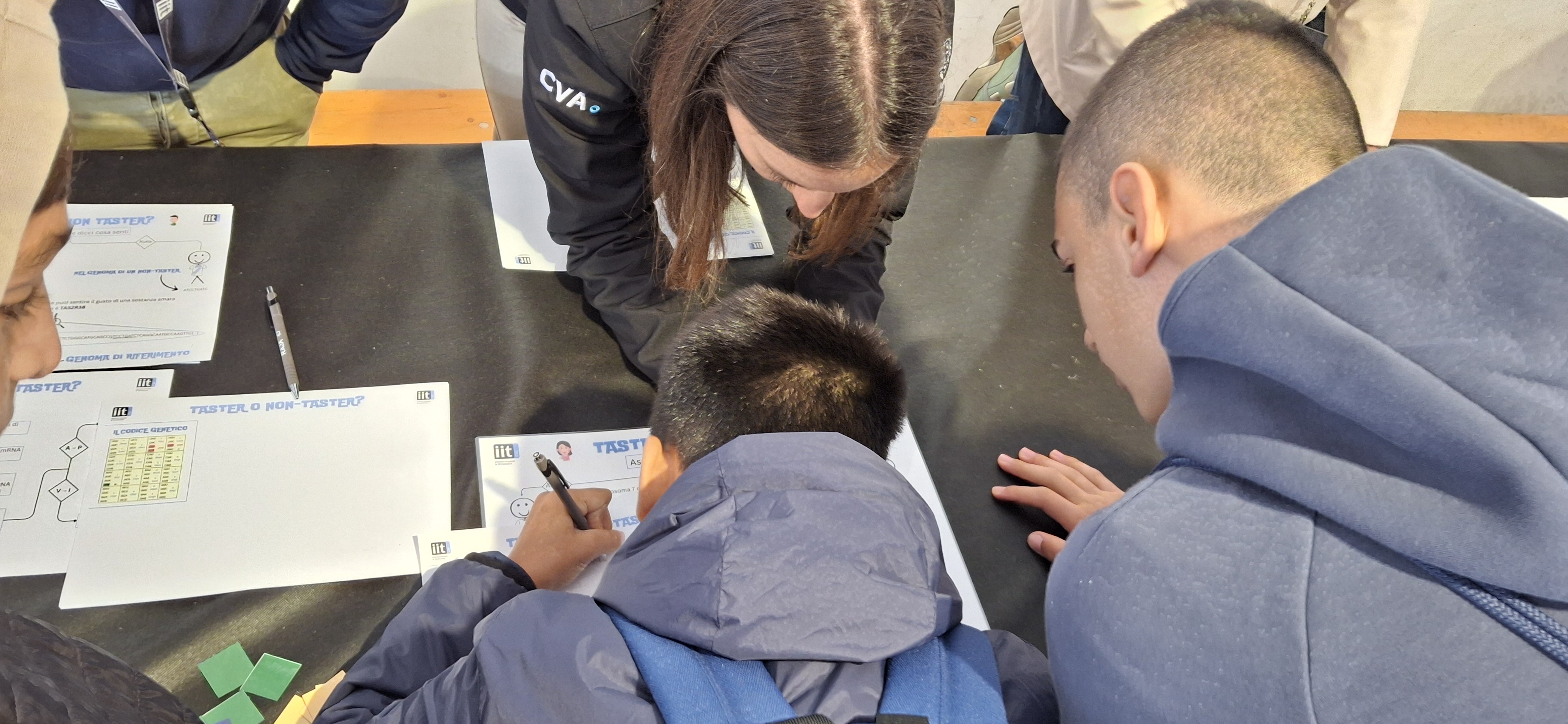 “Taster o non-taster?”: i partecipanti hanno provato sulla propria lingua come tre variazioni genetiche condizionino la capacità di percepire il gusto amaro. Ricostruendo il percorso biologico dal DNA fino alla proteina, ognuno ha scoperto quali sono le istruzioni genetiche che permettono di sentire o non sentire il gusto di una sostanza amara.