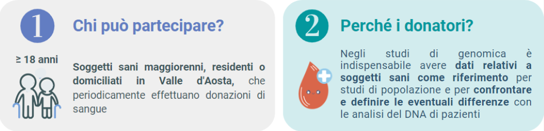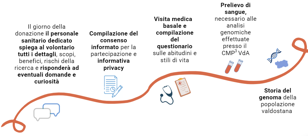 Lo studio VdA Genomics ha l'obiettivo di studiare il profilo genomico e le caratteristiche genetiche della popolazione attuale della Valle d’Aosta, per comprendere meglio la storia di questa e altre popolazioni italiane e identificare le possibili cause di alcune patologie