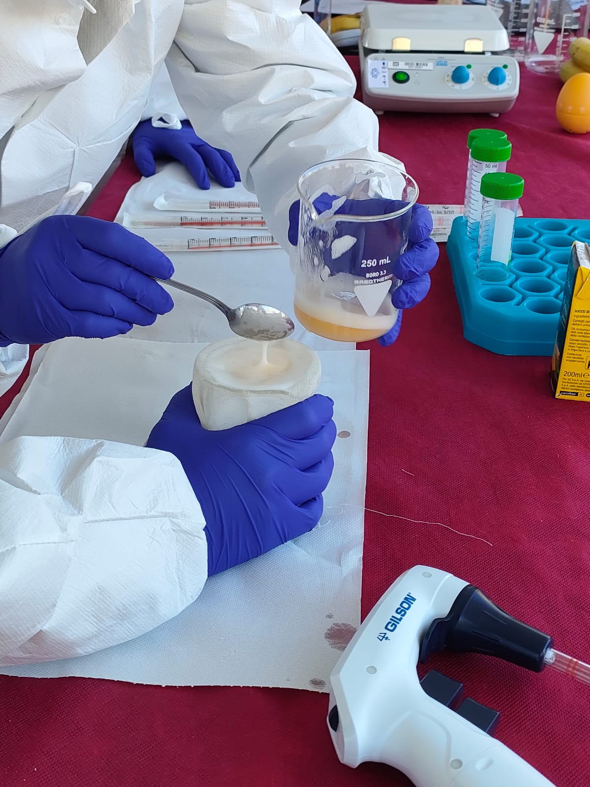 La mattinata è stata dedicata agli incontri con le classi quinte delle scuole superiori di secondo grado. Per l’occasione, alunne e alunni si sono cimentate in attività di gruppo a tema genomica e AI e hanno provato in prima persona l’estrazione del DNA da frutto.