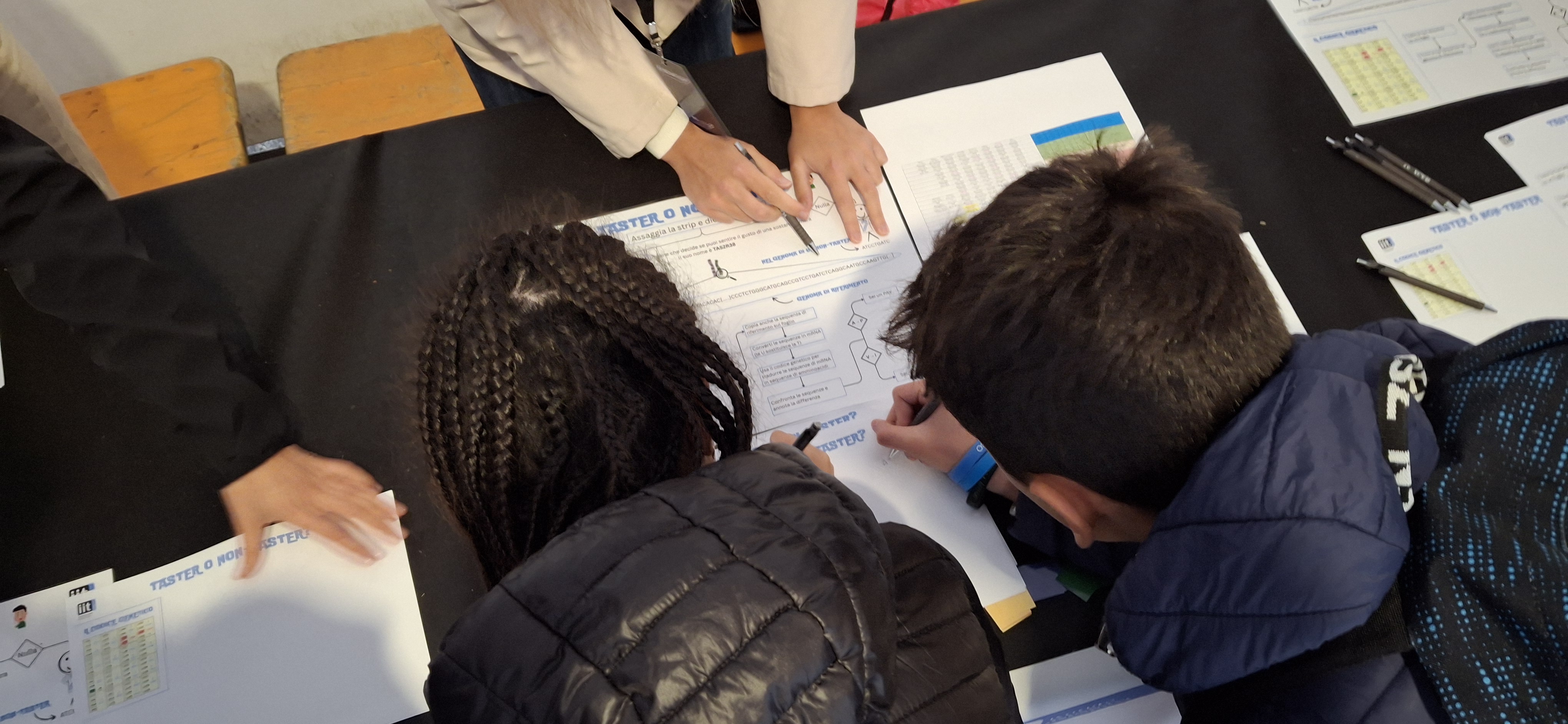 “Taster o non-taster?”: i partecipanti hanno provato sulla propria lingua come tre variazioni genetiche condizionino la capacità di percepire il gusto amaro. Ricostruendo il percorso biologico dal DNA fino alla proteina, ognuno ha scoperto quali sono le istruzioni genetiche che permettono di sentire o non sentire il gusto di una sostanza amara.
